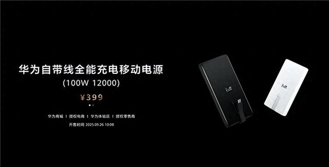 据悉,华为自带线全能充电移动电源将于9月26日10:08开售。