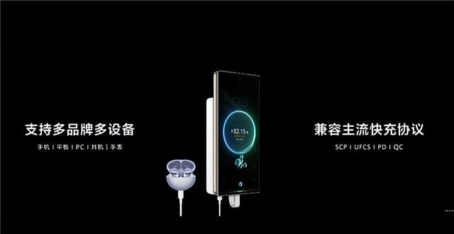同时支持多品牌多设备,可为手机、平板、PC、耳机、手表等设备充电,兼容SCP、UFCS、PD、QC等主流快充协议。